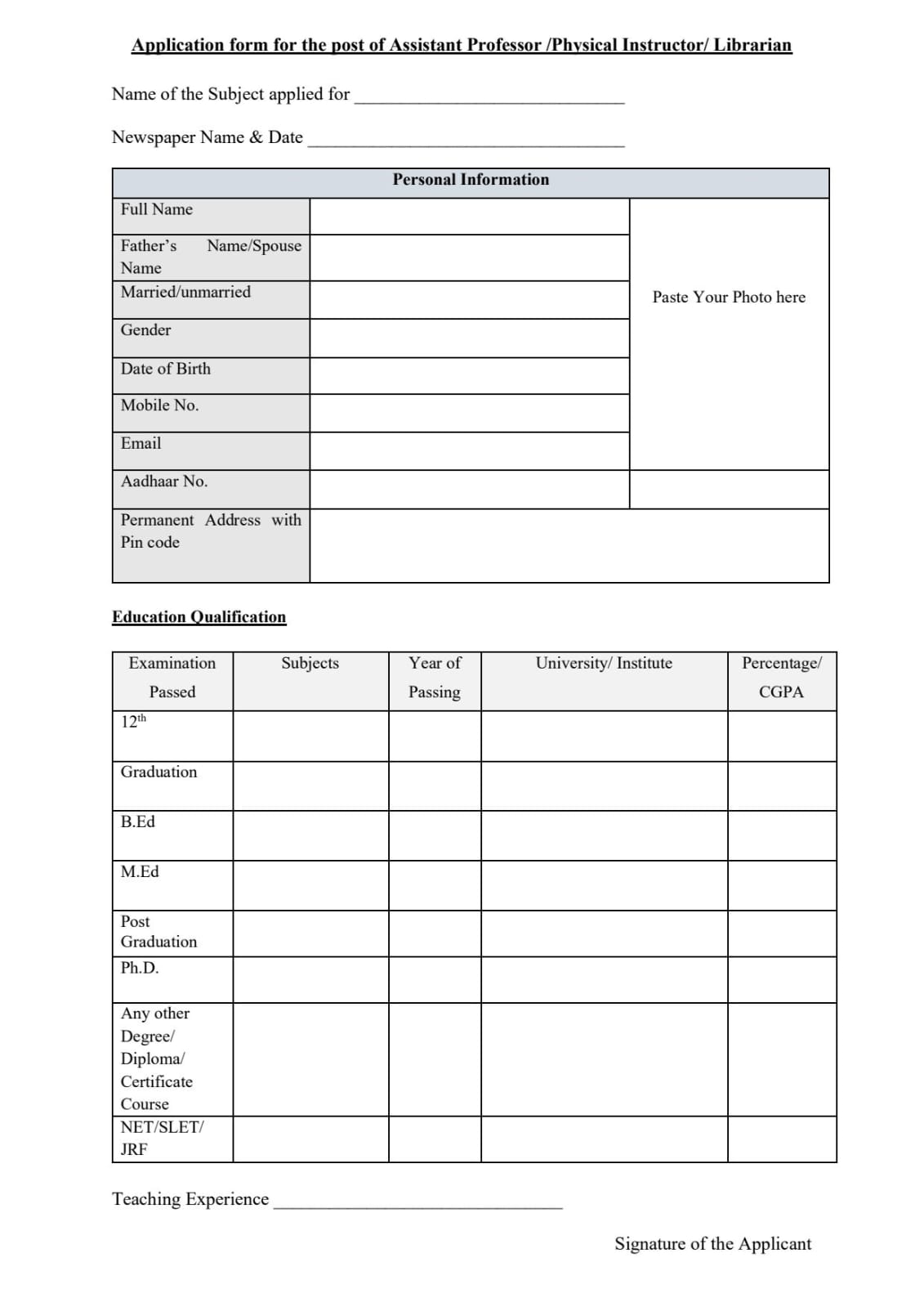 2. Assistant Professor in Teaching of English, Hindi, Math, Social Science, Bio-Science, Physical Science, Commerce, Performing Arts (Music, Dance, Theatre), Fine Arts, Health & Physical Education
